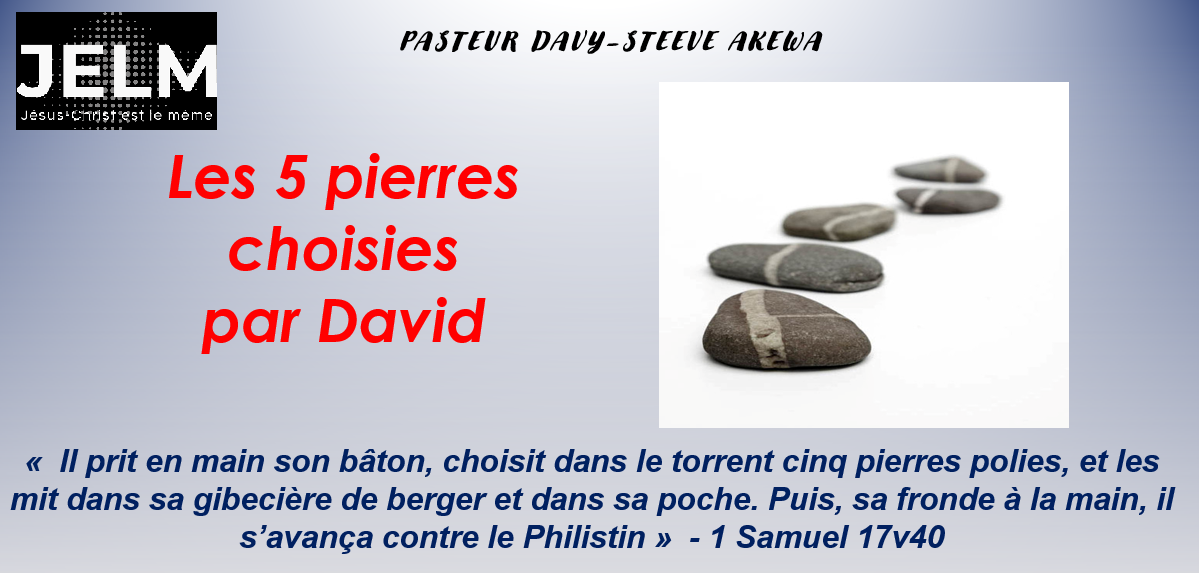 «  Il prit en main son bâton, choisit dans le torrent cinq pierres polies, et les mit dans sa gibecière de berger et dans sa poche. Puis, sa fronde à la main, il s’avança contre le Philistin »  - 1 Sam 17v40